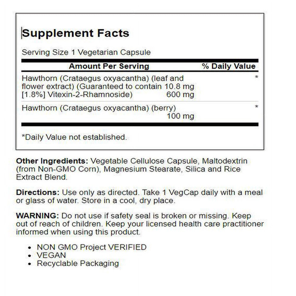 | Product Name | Solaray One Daily Hawthorn Extract 600 mg Capsules, 30 Ct |