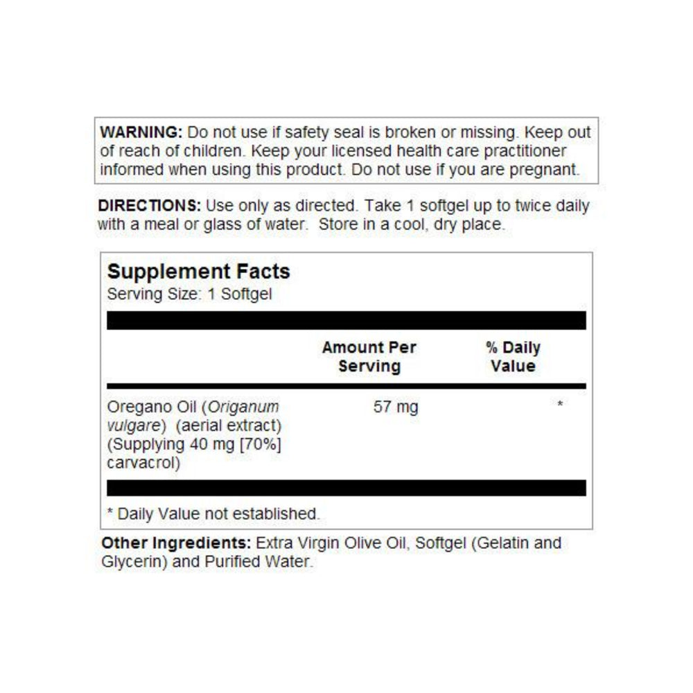 | Product Name | Solaray Oregano Oil 70% Carvacrol Supplement | 60 Count |