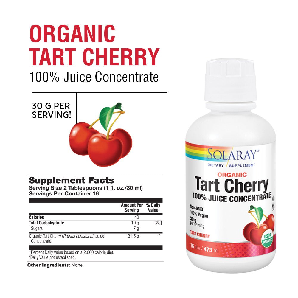 Solaray Organic Tart Cherry 100% Juice Concentrate | Healthy Uric Acid Levels & Joint Support | 16 Servings | 16 Fl Oz