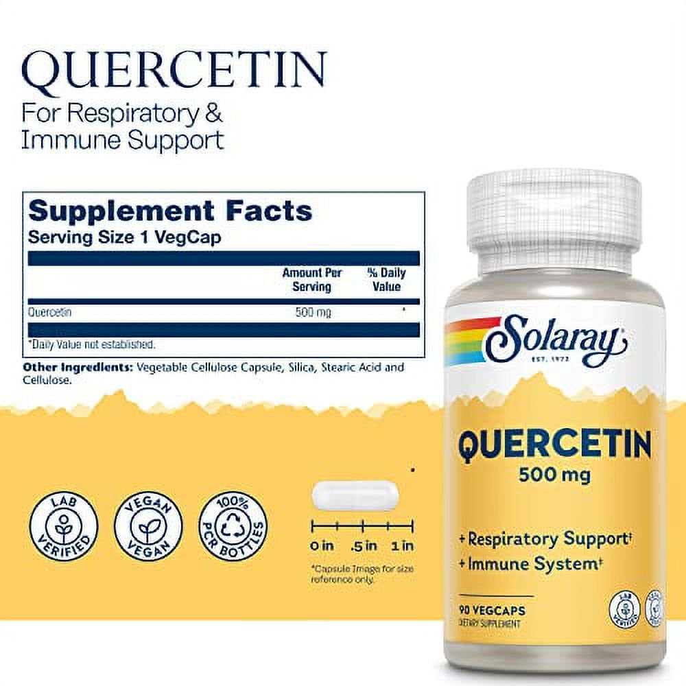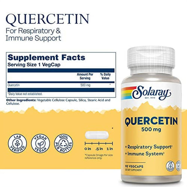 Solaray Quercetin 500 Mg, Supports Sinus, Respiratory, Immune Function & Normal, Healthy Uric Acid Levels, 90 Vegcaps