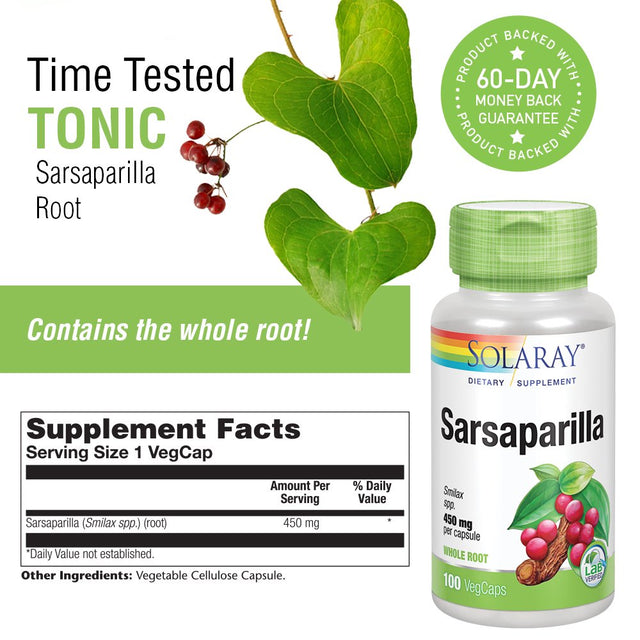 SOLARAY Sarsaparilla Root, Veg Cap (Btl-Plastic) 450Mg 100Ct