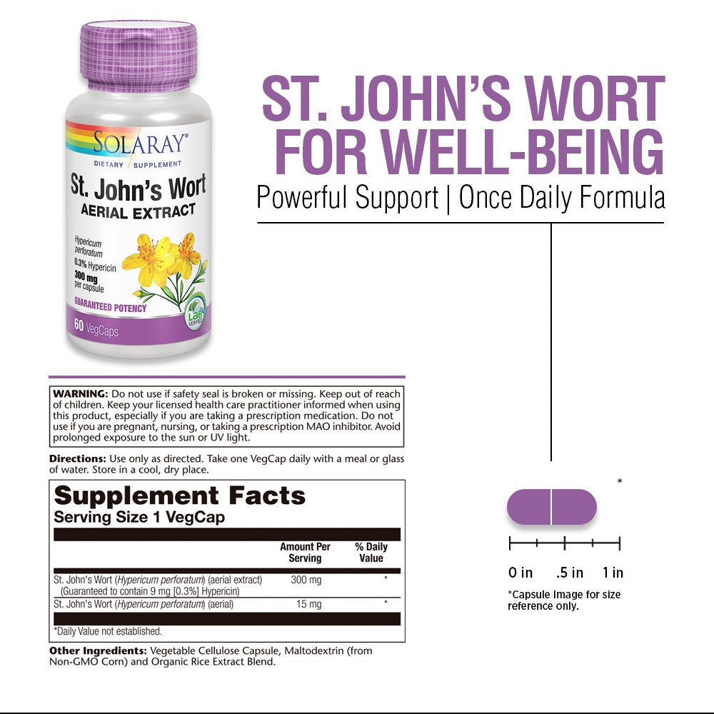 Solaray St Johns Wort Aerial Extract 300 Mg, Once Daily | Mood & Brain Health Support | 0.3% Hypericin | 60Ct