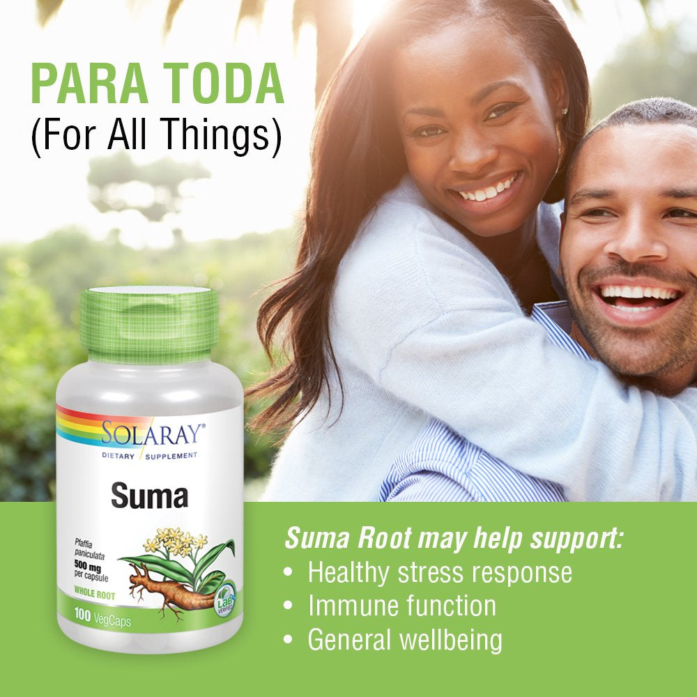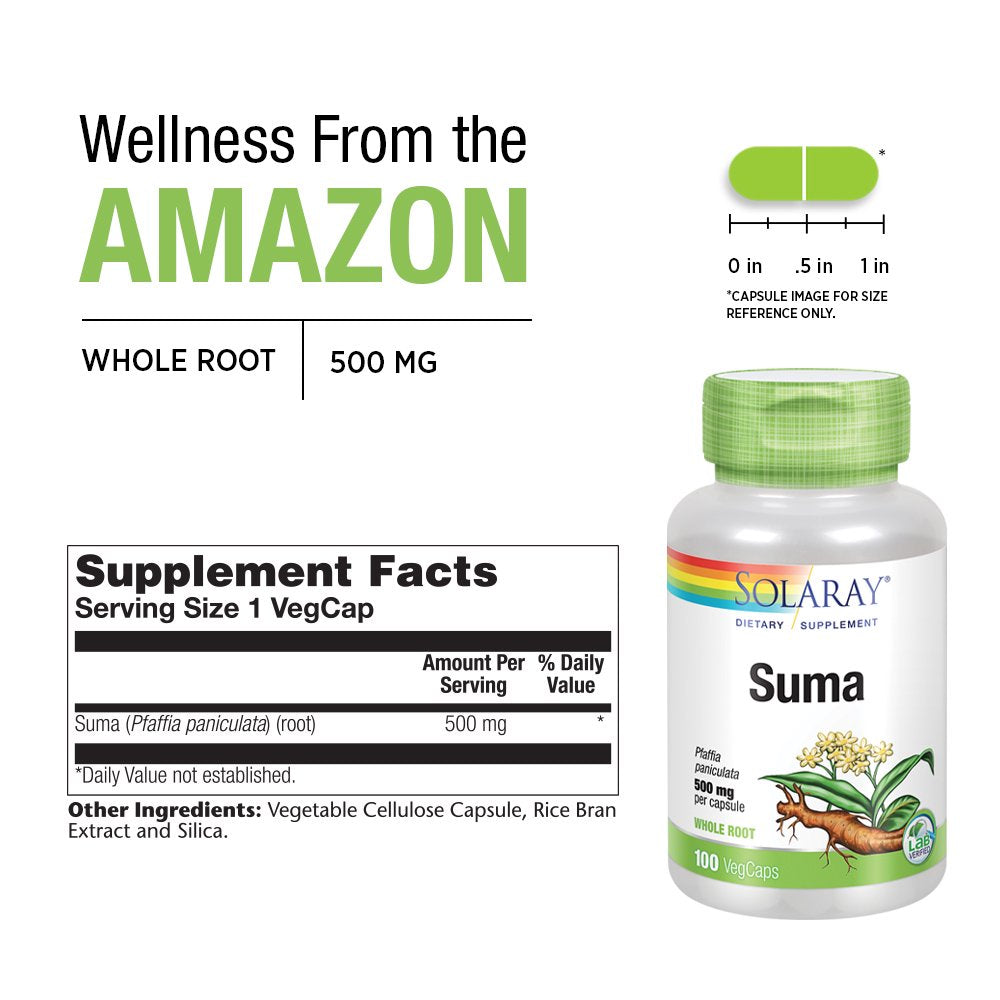 | Product Name | Solaray Suma Root 500mg | Adaptogenic Herb for Healthy Stress & Immune Function Support | Naturally Plant Sterols | Non-GMO & Vegan | 100 VegCaps |