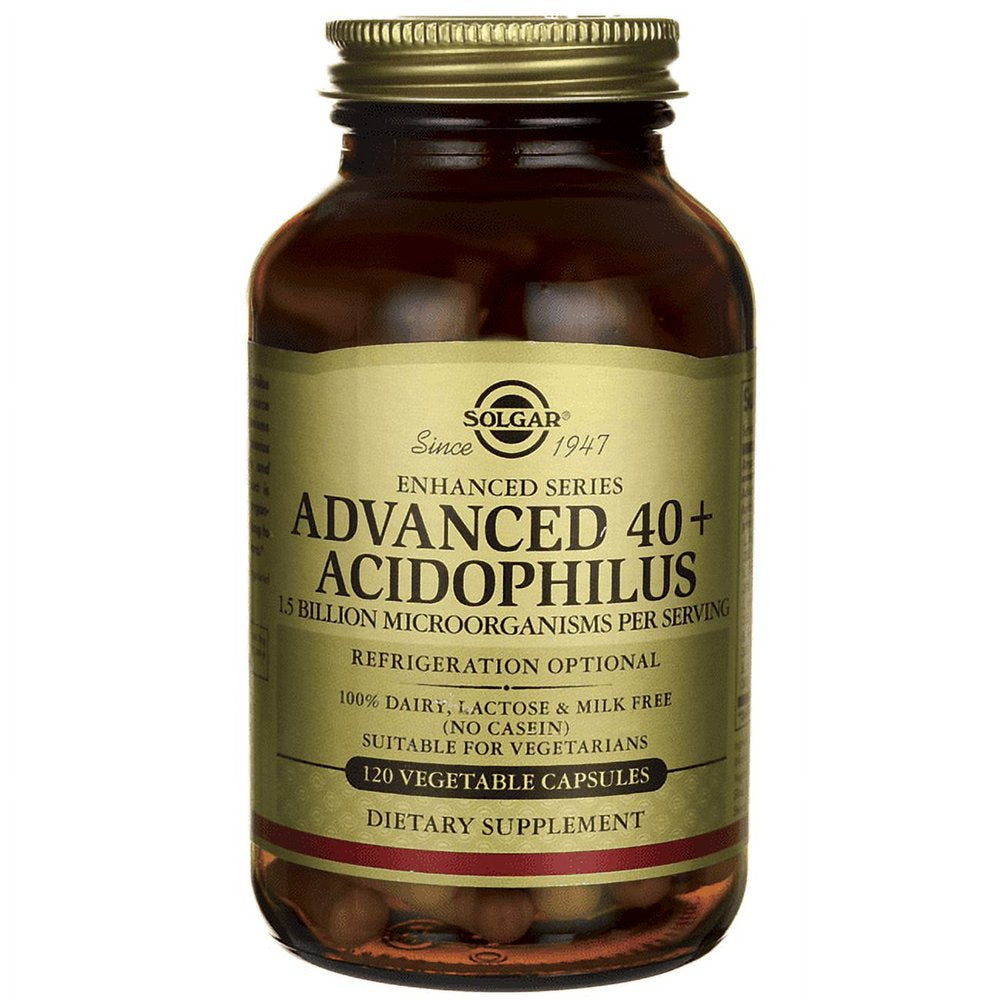Solgar - Enhanced Series Advanced 40+ Acidophilus - 120 Vegetarian Capsules Solgar Enhanced Series Advanced 40+ Acidophilus supports digestive and intestinal health. Solgar Enhanced Series Advanced 40+ Acidophilus supports the healthy functioning of the intestinal system by promoting a favorable environment for the absorption of nutrients. Solgar Enhanced Series Advanced 40+ Acidophilus is 100% dairy, lactose and milk free. Solgar Enhanced Series Advanced 40+ Acidophilus contains no casein.