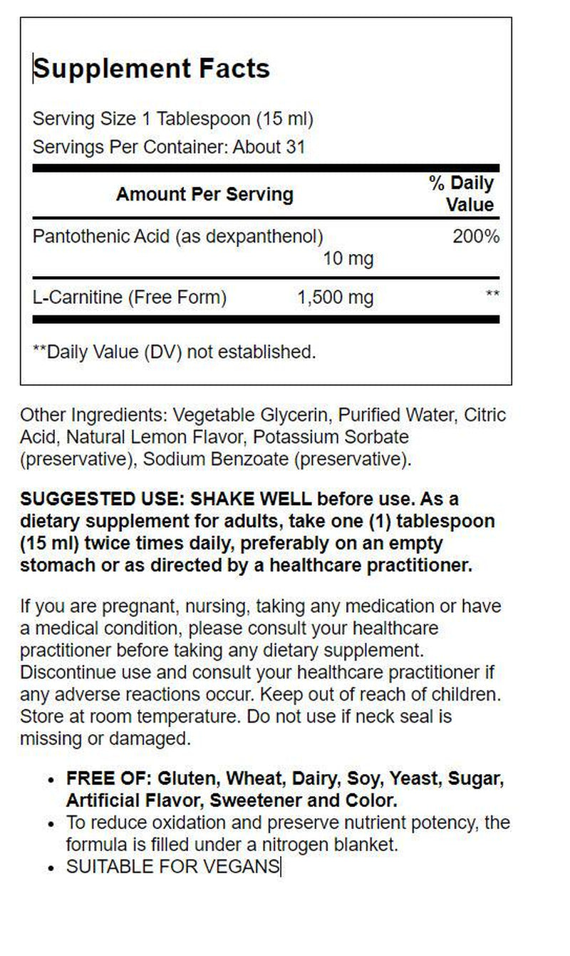 Solgar L-Carnitine 1,500 Mg 16 Fl Oz Liq
