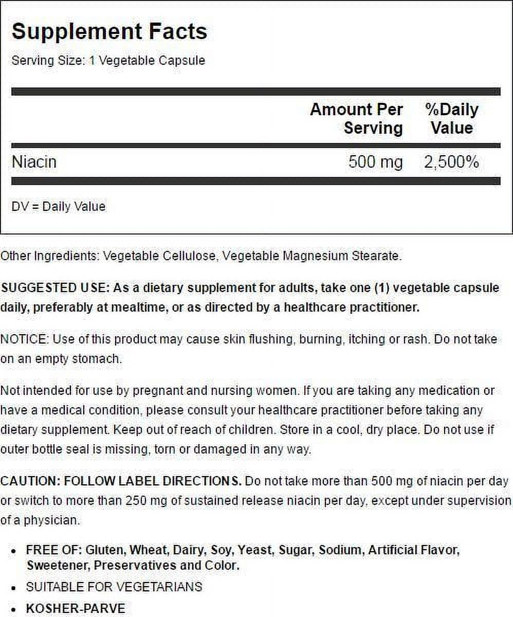 Solgar Niacin (Vitamin B 3), 500 Mg, 100 Vegetable Capsules is backordered and will ship as soon as it is back in stock.