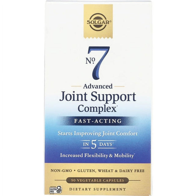 Solgar - No. 7 Joint Support - 90 Vegetarian Capsules Solgar No. 7 joint support is the next generation alternative after glucosamine that increases mobility, flexibility and range of motion in sensitive joints. In this breakthrough formulation, No. 7 brings together bio-active nutrients that work to create a fast acting approach for occasional 'tweaks' and joint stresses brought on by exercise, sport or physical activity. With increased mobility and flexibility, Solgar No. 7 can help you