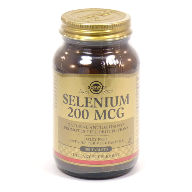 Solgar - Selenium 200 mcg. - 100 Tablets Selenium is an essential trace mineral. It is a component of the powerful antioxidant enzyme glutathione peroxidase, which helps to fight cell-damaging free radicals. Selenium also helps recycle Vitamin E, which in turn helps promote cell protection. This formulation provides Selenium from primary grown yeast. Solgar Selenium 200 mcg Contains: No Dairy No Soy No Sugar No Sodium No Artificial Flavor No Sweetener No Preservatives No