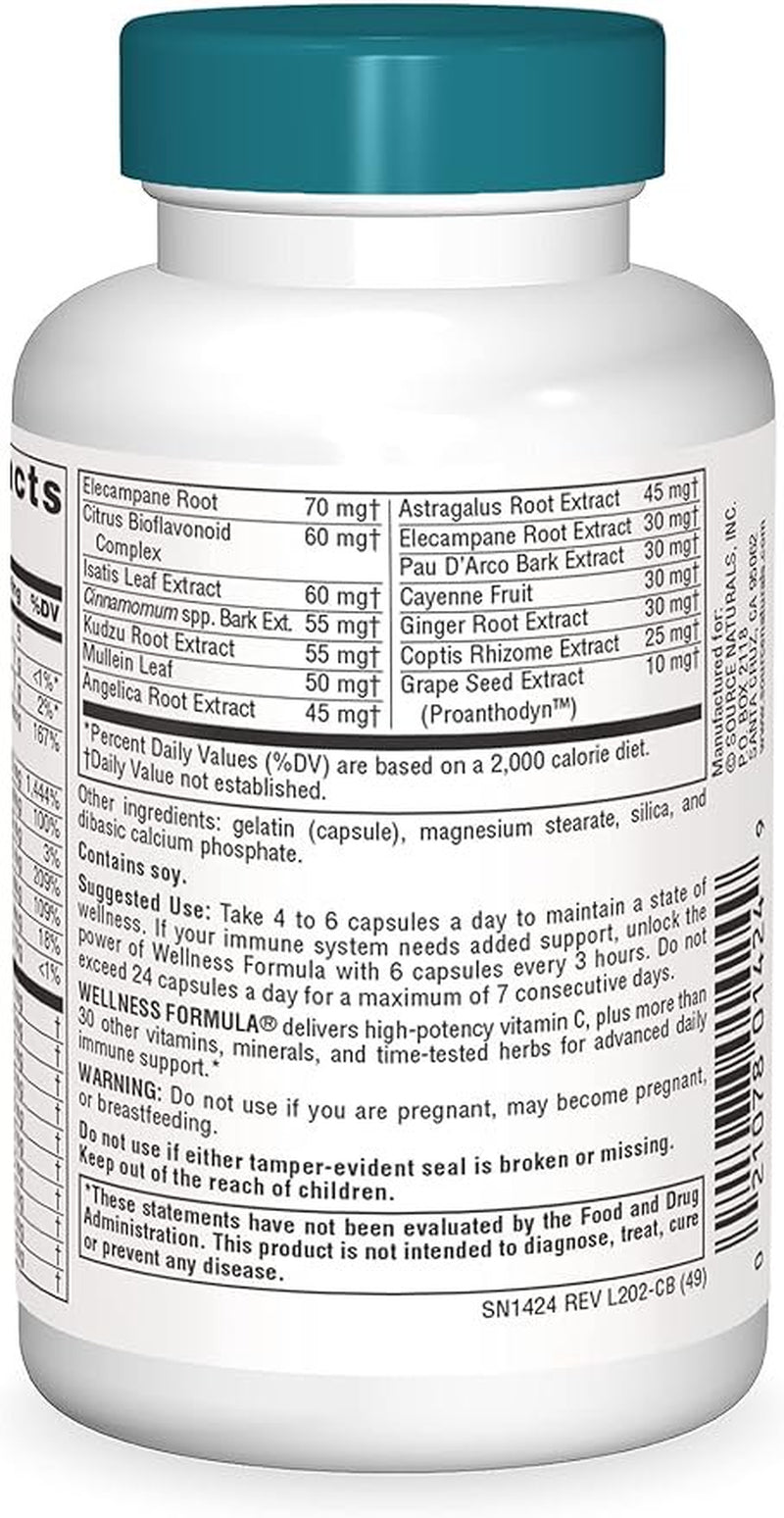Source Naturals Wellness Formula Bio-Aligned Vitamins & Herbal Defense for Immune System Support - Dietary Supplement & Immunity Booster - 60 Capsules