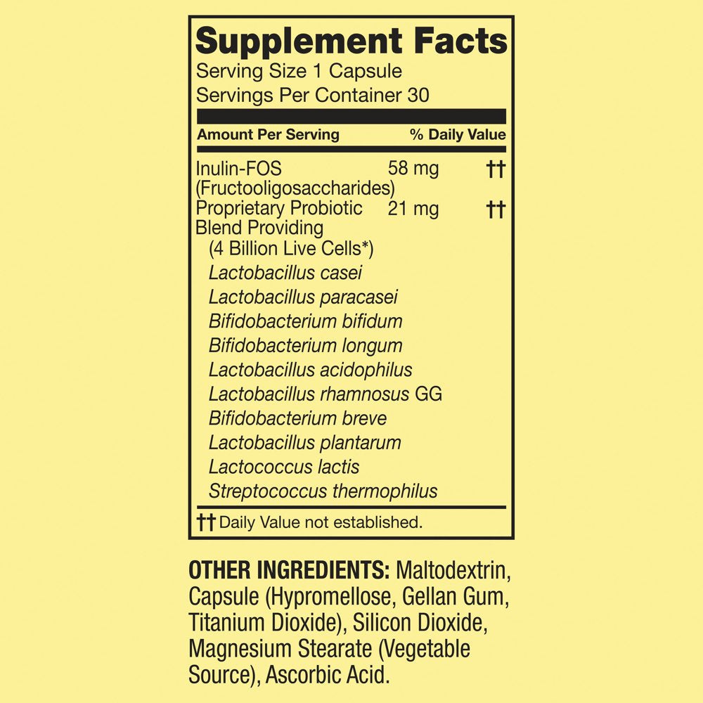 - Contains probiotic fibers and 10 strains of beneficial bacteria