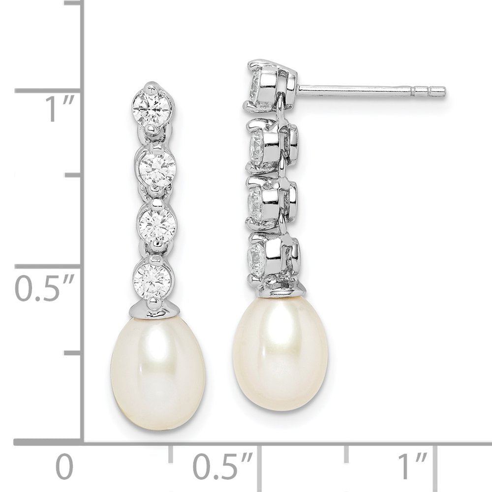Sterling Silver Rhod-plat 7-8mm White Rice FWC Pearl CZ Earrings QE15202