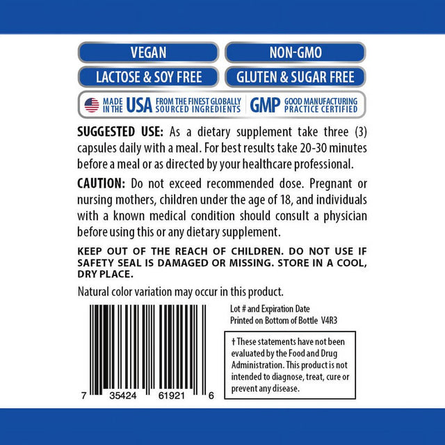 ✔️ Soy-Free, Lactose-Free, Non-GMO, No Magnesium Stearate, Gluten-Free, Sugar-Free