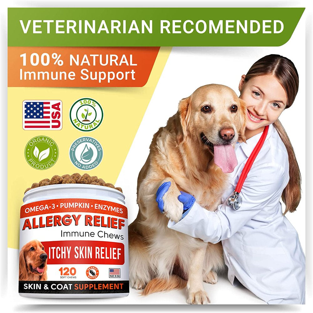 - Dry Itchy Skin Relief with Omega-3: Our chewable treats contain Omega 3 fatty acid, digestive enzymes, known to be an essential element to maintain healthy skin and coat, treat hot spots, paw licking prevention, stop shedding and ease dry skin for your beloved doggie.
