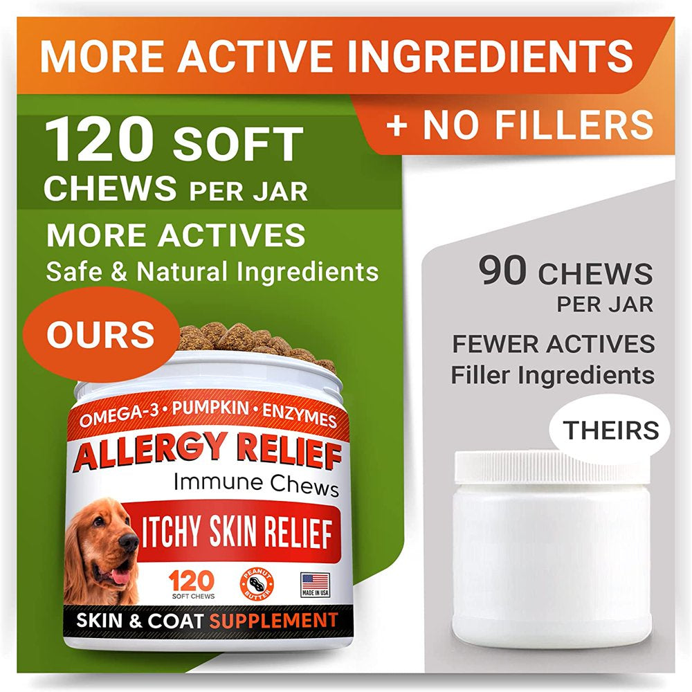 - Effective Allergy Relief: These dog allergy bites help protect dogs’ immune system from seasonal, food and environmental allergies, relieving excessive itching, redness, sneezing, sking irritation, scratching, chewing paws or other allergy symptoms.