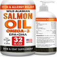Itch & Allergy Relief EPA + DHA Skin & Coat Supplement Wild Alaskan Salmon oil is human-grade fish oil, rich with healthy Omega-3 fatty acids (EPA + DHA). Promotes healthy looking skin and coat, ease skin allergies and itching, boosts immune, mobility and joint health. Sustainably sourced in Alaskan waters. Fish oil is GMO free, and has no additives or flavoring.