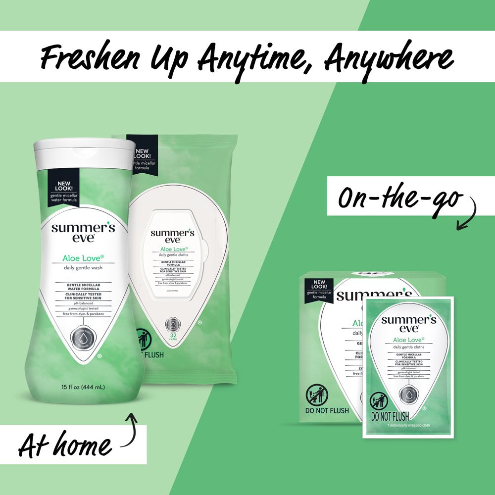 - Summer’s Eve Aloe Love Daily Gentle Feminine Wash removes odor-causing bacteria