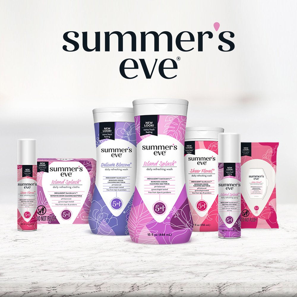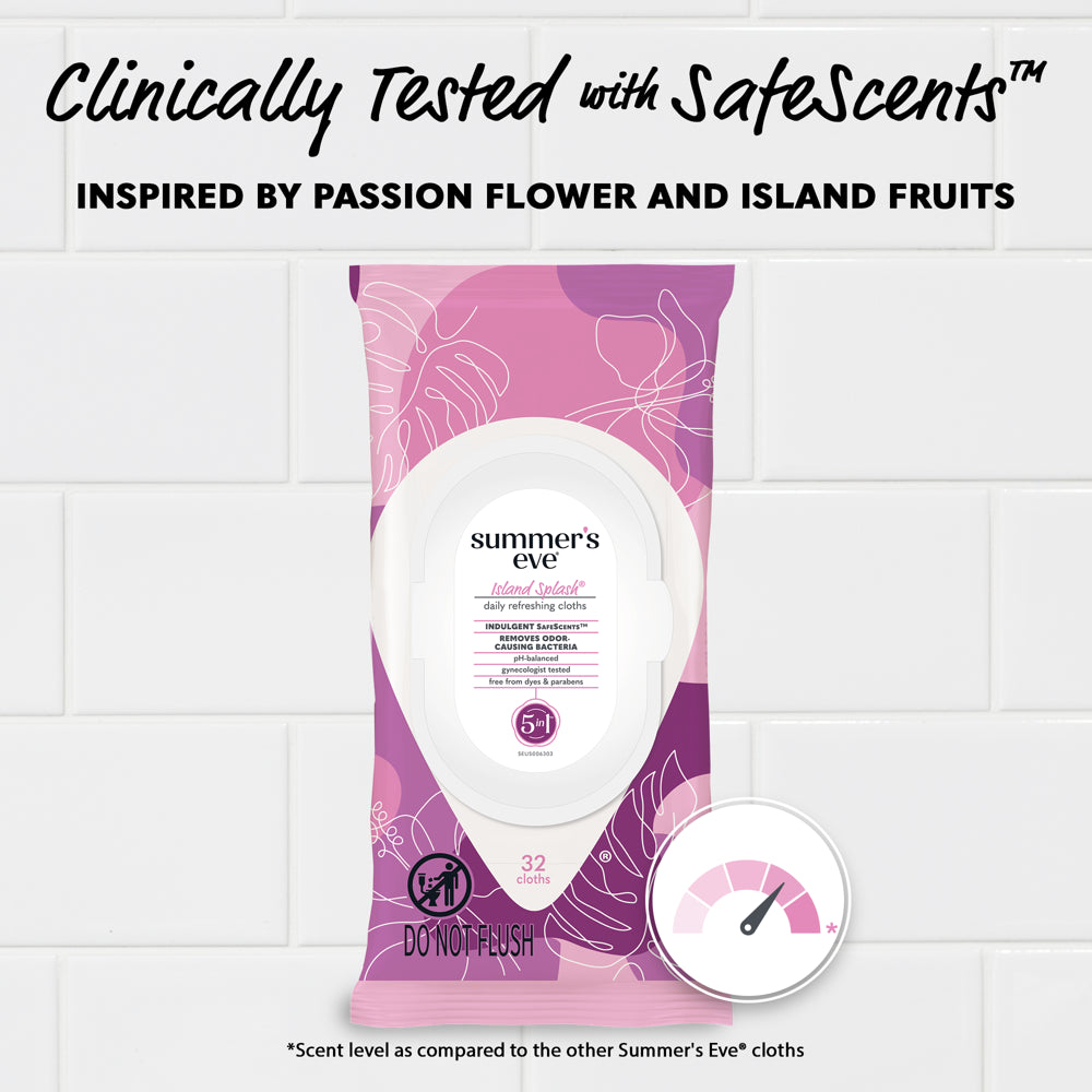 - Summer’s Eve Island Splash Refreshing Daily Feminine Wipes remove odor-causing bacteria