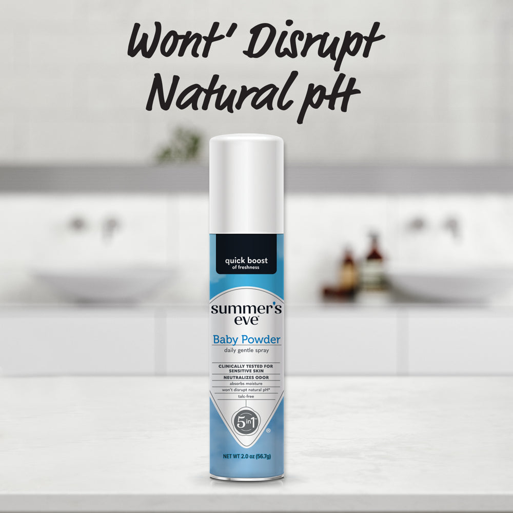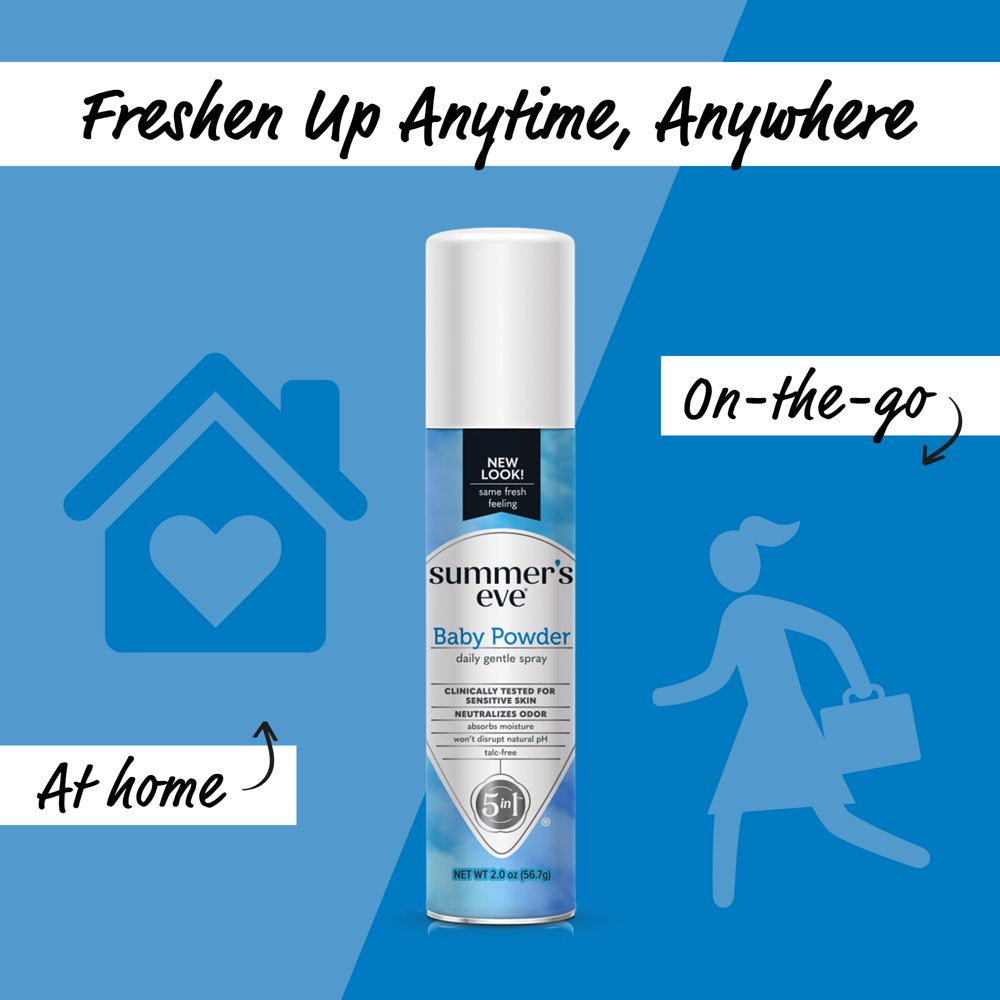 - Summer's Eve Baby Powder daily feminine spray neutralizes odor