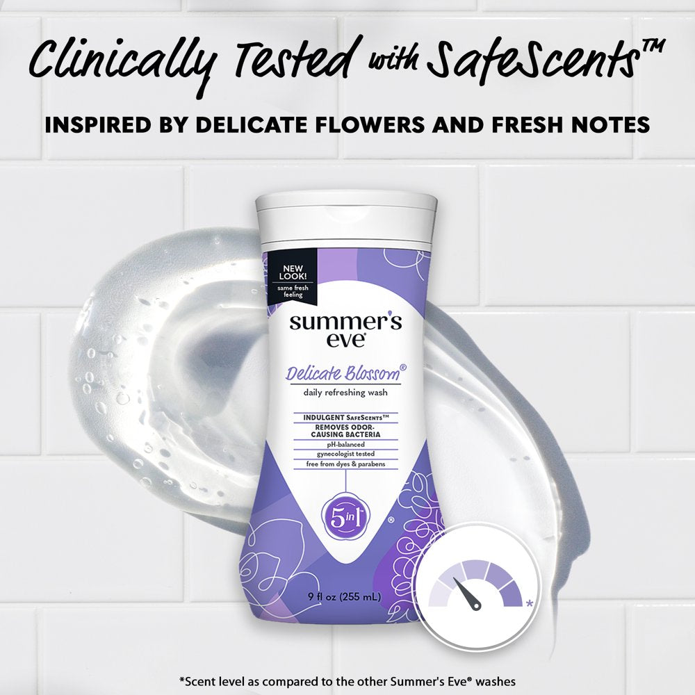 - Contains 1 bottle of Summer's Eve Delicate Blossom feminine wash 9 fl oz