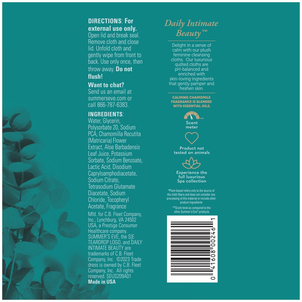 Summer'S Eve Spa Calming Chamomile Feminine Wipes, 100% Plant Based*, Plush Cloths, 24 Ct