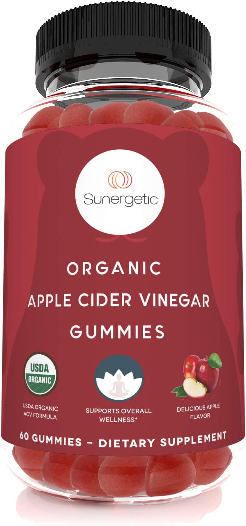 Sunergetic USDA Organic Apple Cider Vinegar Gummies with the Mother – Organic ACV Gummies to Support Overall Wellness – Certified Organic, Non-Gmo & Vegan - 60 Apple Cider Vinegar Gummies