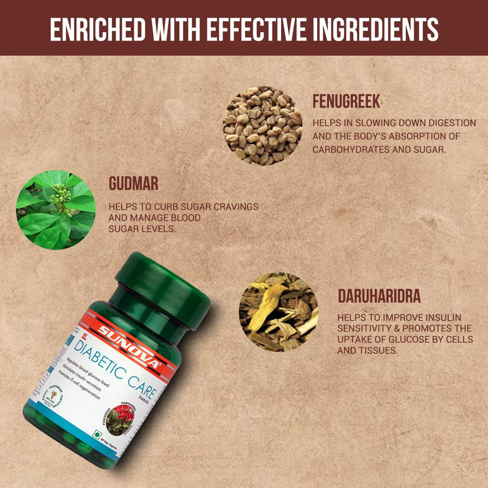 SUNOVA DIABETIC for Blood Sugar Balance 60 Capsules Helps manage diabetes Enhances insulin secretion Builds immunity Cholesterol Curbs sugar craving Effective in diabetes Weight loss