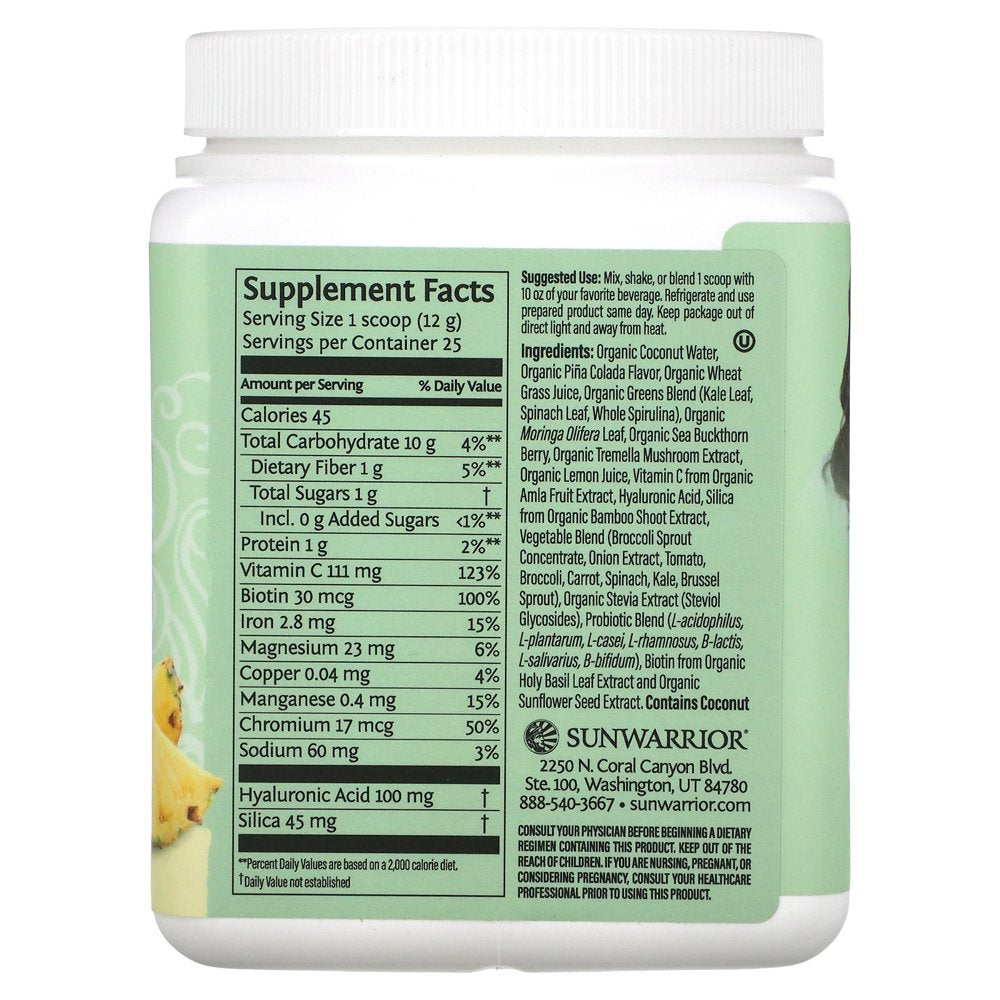 Sunwarrior, Beauty Greens Collagen Booster, Pina Colada, 10.6 Oz (300 G)