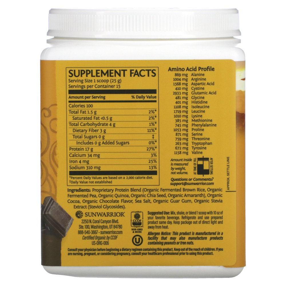 Sunwarrior, Classic plus Protein, Plant Based, Chocolate, 13.2 Oz (375 G)