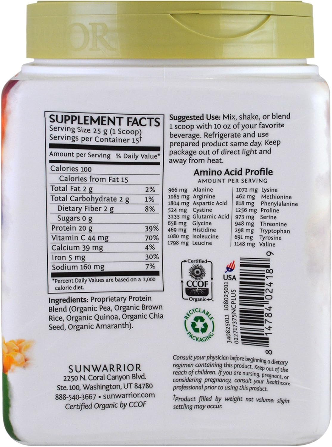 SUNWARRIOR Organic Classic plus Natural, 375 GR is backordered and will ship as soon as it is back in stock.