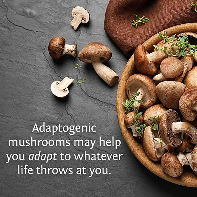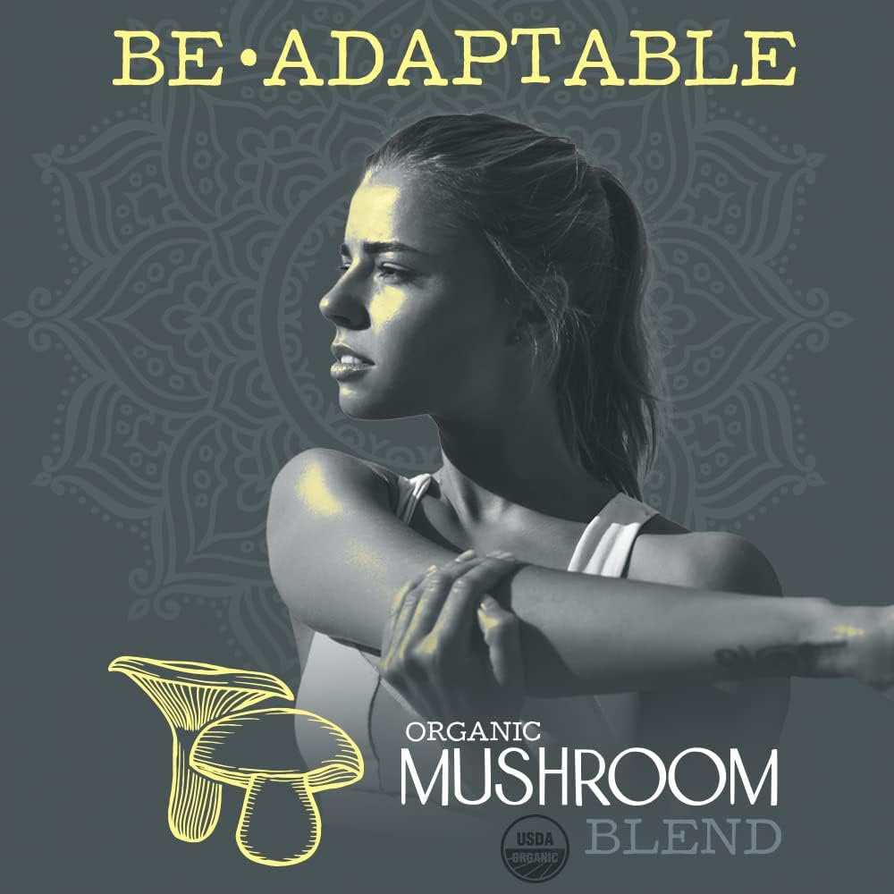- Organic Adaptogenic mushrooms may help you adapt to whatever life throws at you. Science and nature have come together to celebrate endurance, performance, and wellness in the body. Contains naturally powerful combinations of 6 mushrooms: Cordyceps, Reishi, King Trumpet, Shiitake, Lions Mane, and Turkey Tail.