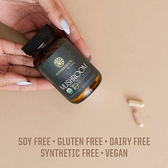 Sunwarrior Organic Mushroom Nootropics Brain Support Supplement | Be Well Mushroom Complex Capsules, 60 Ct