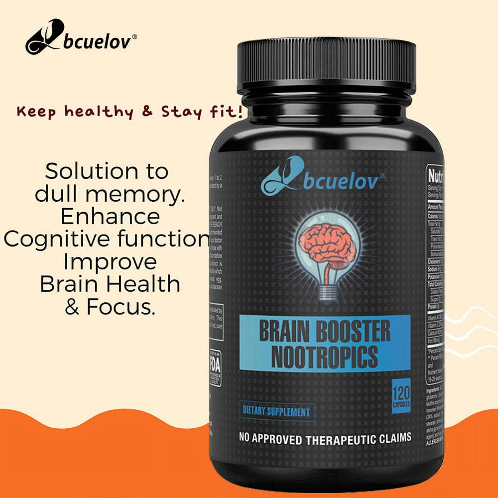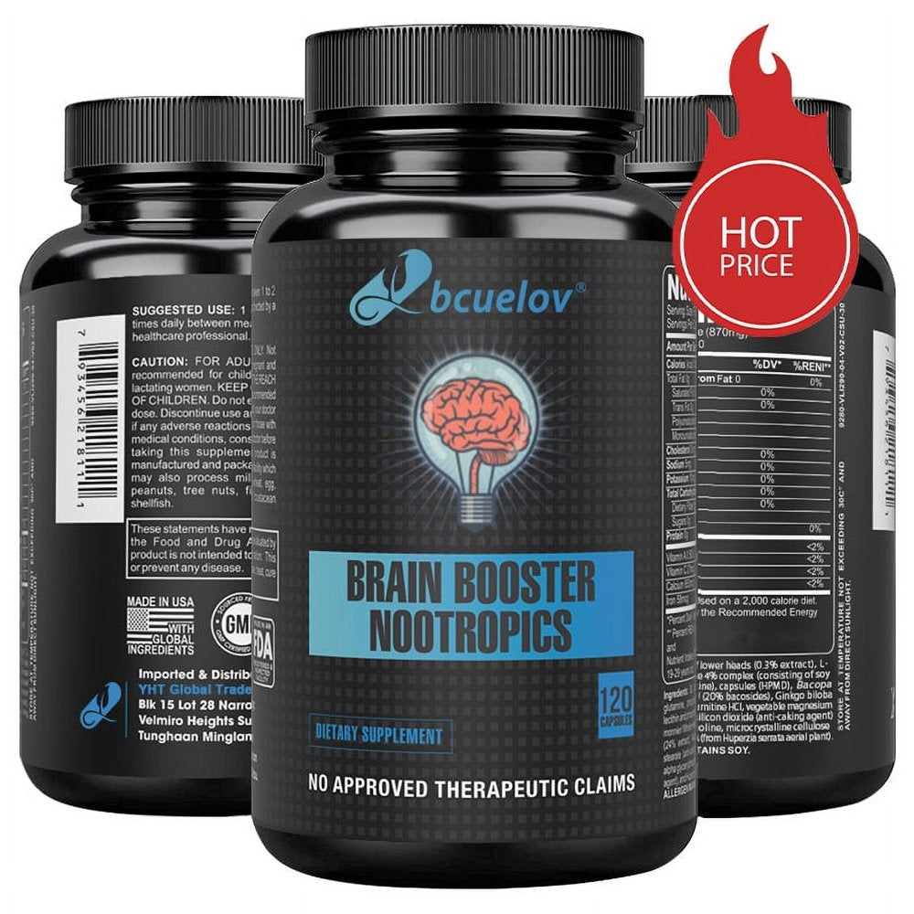 REDUCES FATIGUE & MENTAL FOGGINESS - Nootropics are concentration essentials that are known to reduce fatigue while fighting the detrimental effects of mental fogginess. Our brain vitamins contain DMAE, which produces feelings of improved mental clarity, cognitive ability, memory, and physical energy. ENHANCES BRAIN HEALTH & MEMORY - Our Brain Booster supplement is a natural nootropic pill that provides memory-enhancing results that help to improve brain health and memory. HIGH-QUALITY NOOTROPIC - Our Brain Supplement works to enhance cognitive function through key nutrient supplementation. Each nootropic capsule contains highly effective ingredients that may improve memory, focus, mental clarity and alertness IMPROVES MOOD & LOGICAL PROCESSING - The natural ingredients in our Brain Booster work to improve mood and enhance alertness in order to aid logical processing. When the mind is energized and in the right state, logical reasoning and creativeness are enhanced. ONLY THE BEST INGREDIENTS - All our products are made from all-natural vitamins, minerals & herbal extracts, without the use of harmful additives; non-GMO, and free of hormones, gluten, and all top 8 allergens.