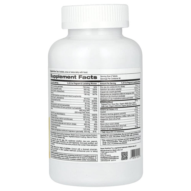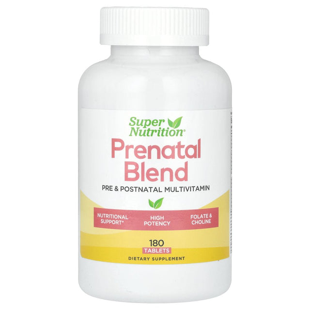 Super Nutrition Prenatal Blend, Multivitamin with Folate and Choline, 180 Tablets