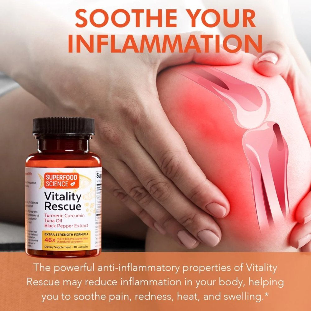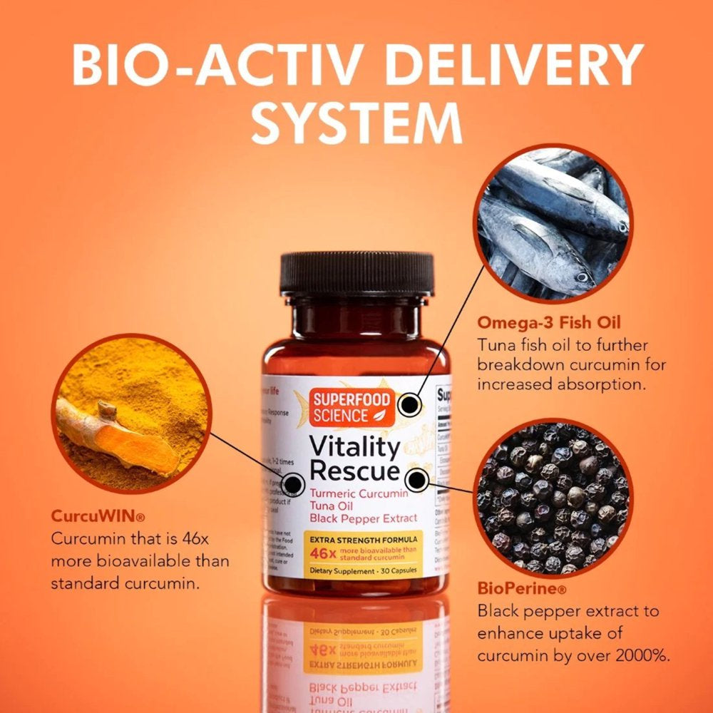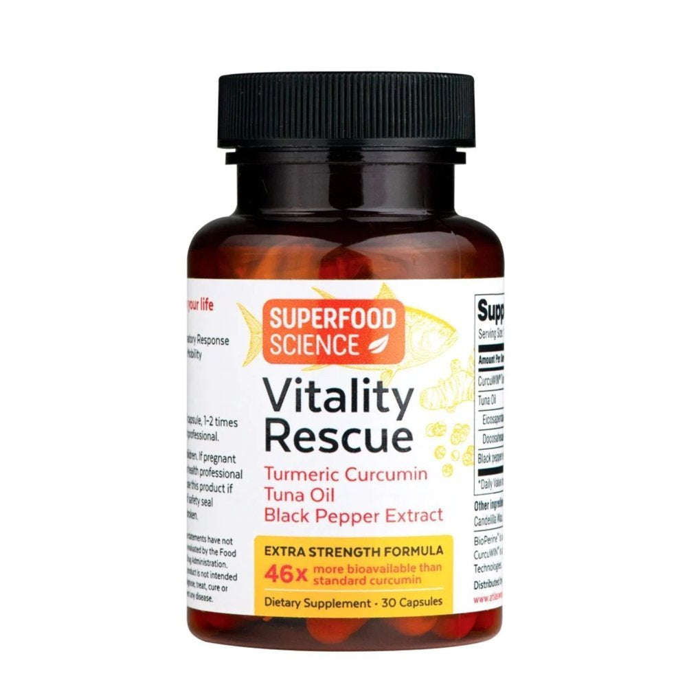 - Vitality Rescue is a dietary supplement with an extra strength formula containing turmeric and BioPerine (for high absorption), along with tuna fish oil to act as the ultimate anti inflammatory supplement