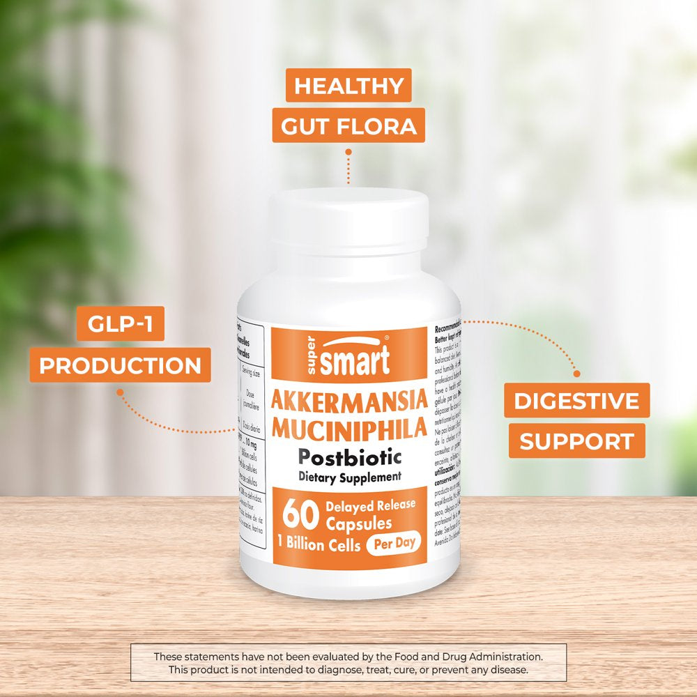 Supersmart - Akkermansia Muciniphila Postbiotic 1 Billion Non-Living Cells per Day (Maximum Strength) - GLP-1, Digestive & Gut Health Supplement | Non-Gmo & Gluten Free - 60 Delayed Release Capsules