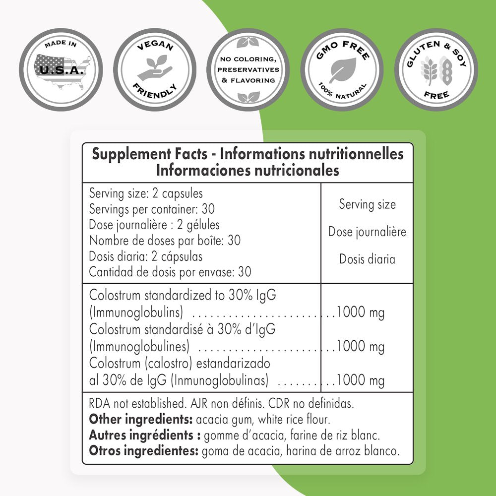 Supersmart - Colostrum 1000 Mg per Day (30% Igg) - Immune Support & Booster - from Bovine Milk - Respiratory & Gut Health Supplement | Non-Gmo & Gluten Free - 60 DR Capsules