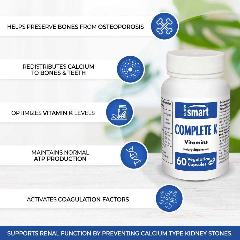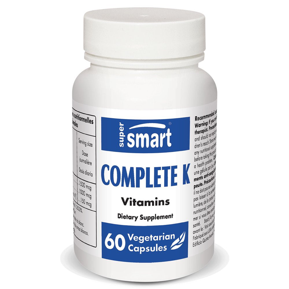 Supersmart - Complete K - with Vitamin K1, K2 (MK-4 + MK-7) - Bones Strength Supplement - Cardiovascular Support | Non-Gmo & Gluten Free - 60 Vegetarian Capsules