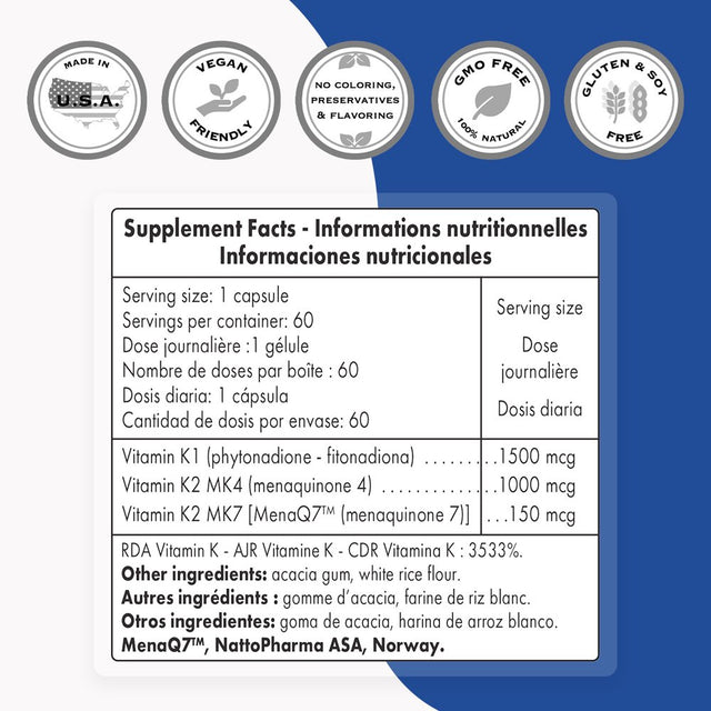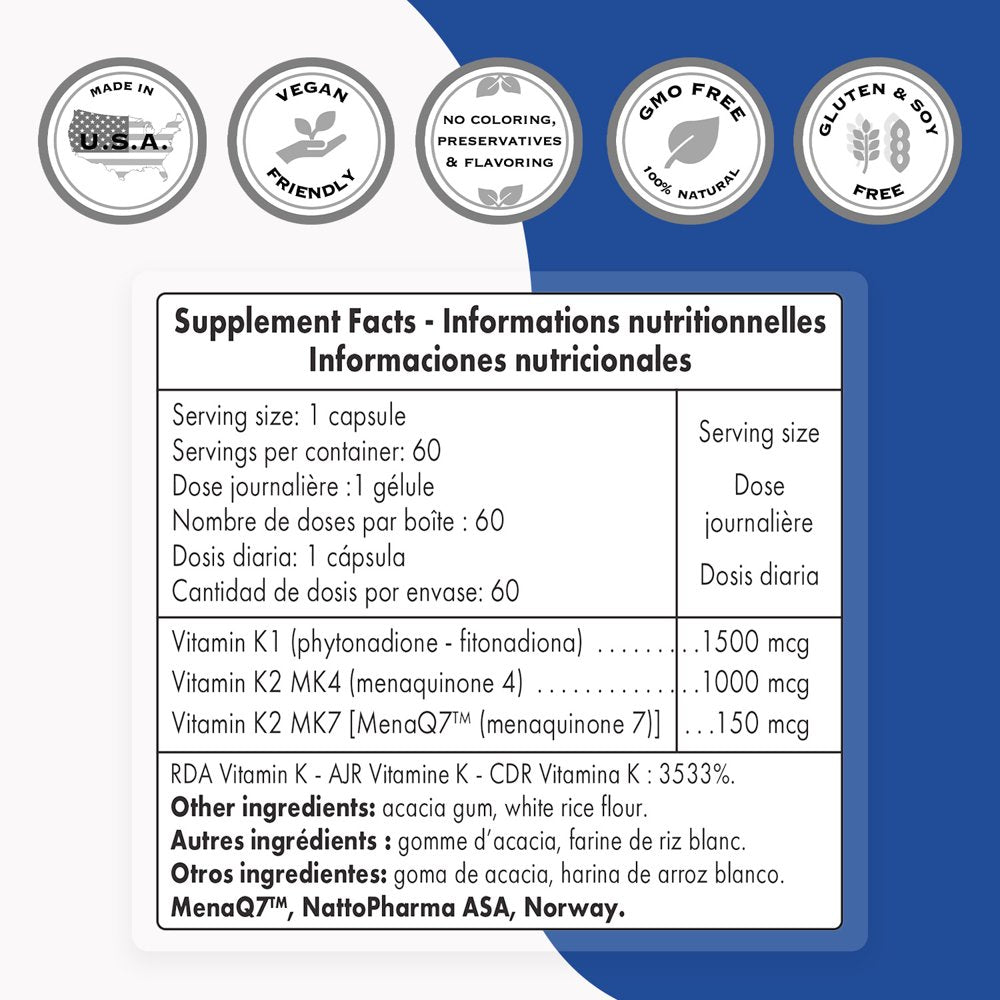 - POTENT BIOAVAILABILITY - Complete delivery of vitamin K with vitamins K1, K2 MK-4 and K2 MK-7.