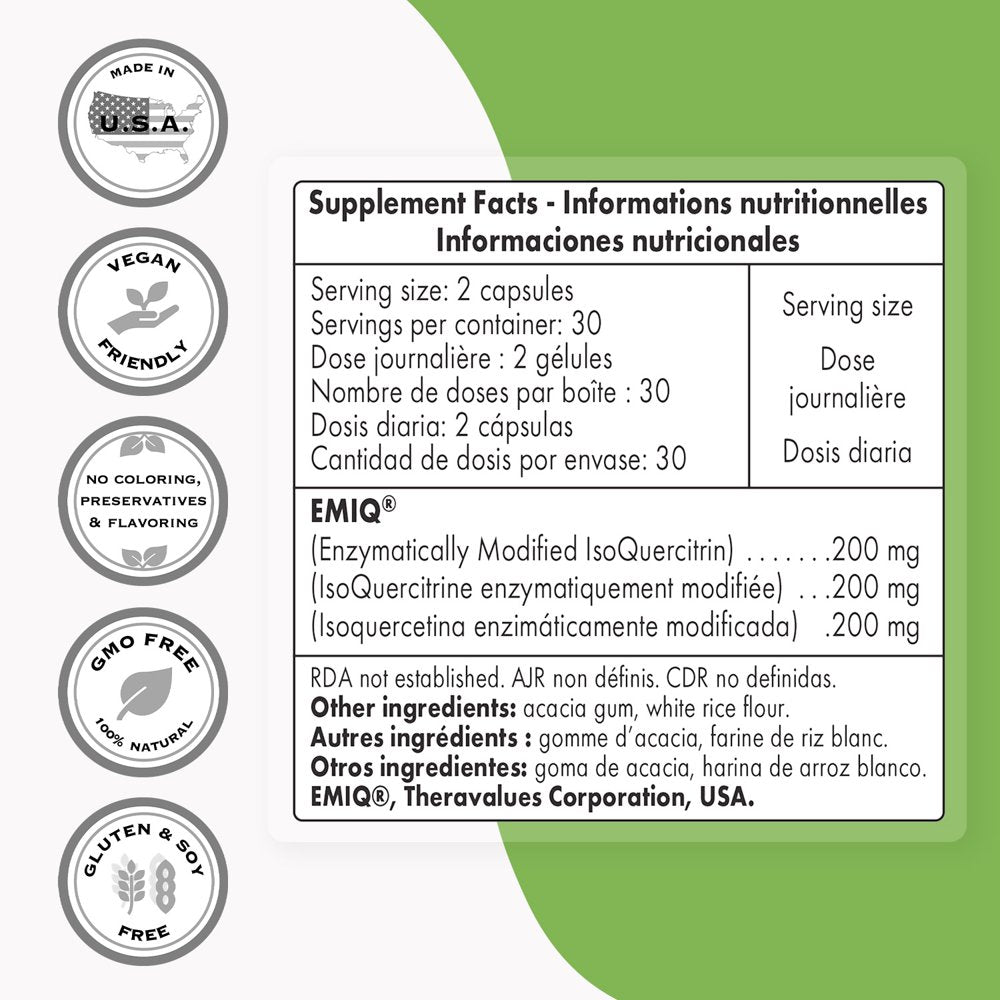 Supersmart - Isoquercitrin 200 Mg per Day - Enhanced Quercetin Supplement - Immune Support | Non-Gmo & Gluten Free - 60 Vegetarian Capsules
