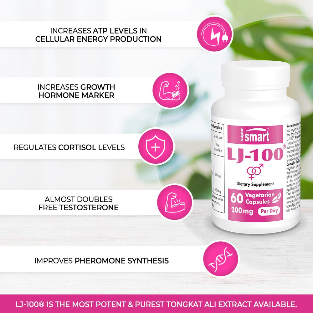Supersmart - LJ-100 200 Mg per Day - Tongkat Ali Supplement - Libido Booster - Stamina & Energy Support | Non-Gmo & Gluten Free - 60 Vegetarian Capsules