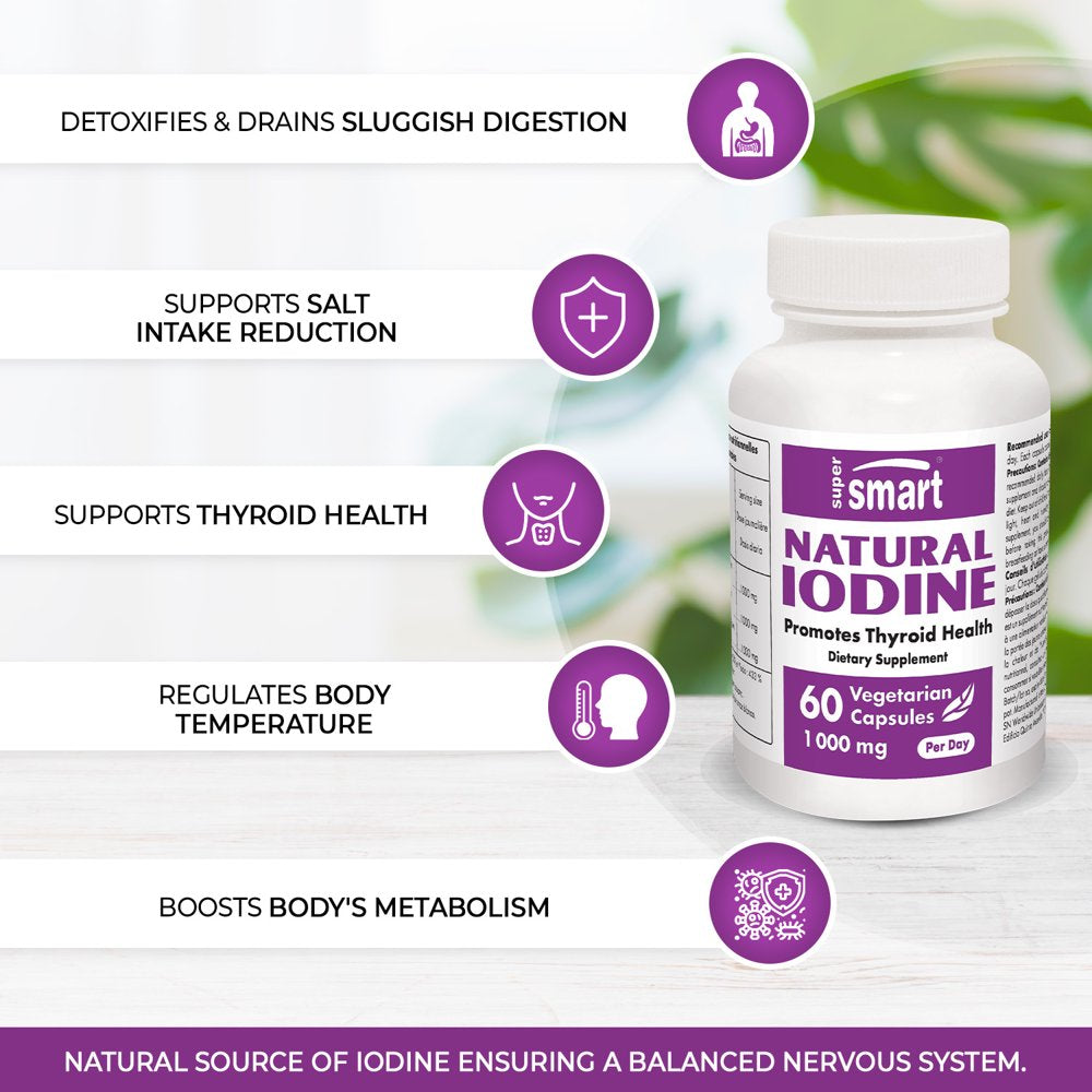 Supersmart - Natural Iodine Supplement 1000 Mg per Day - Thyroid Support - Energy Pills - Mood Boost | Non-Gmo & Gluten Free - 60 Vegetarian Capsules