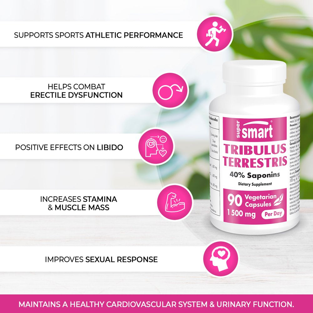 Supersmart - Tribulus Terrestris 1500 Mg per Day - Testosterone Booster for Men - Libido Support | Non-Gmo & Gluten Free - 90 Vegetarian Capsules