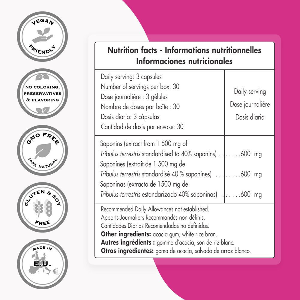 A pioneer in dietary and nutritional supplements for over 30 years. Supersmart Tribulus Terrestris extract is harvested from the Tribulus terrestris plant. Our formula is standardized to 40% saponins and has several therapeutic properties. Sometimes called Maltese Cross, Tribulus Terrestris is a member of the Zygophyllaceae family. This supplement support hormonal balance, promotes muscle strength, libido, may soothe inflammation and more. It could be considered as a male enhancement pill thanks to its effects. This is an effective form for men and women. It is encapsulated in a vegetable capsule, ensuring a maximized effectiveness of Tribulus Terrestris for all. Our products and formulas are constantly updated to reflect the latest scientific research, advances, and production methods. We offer an outstanding quality and choice of Gluten Free, Non-GMO, Additive Free, Soy Free, Nanoparticules Free and Vegan Friendly products