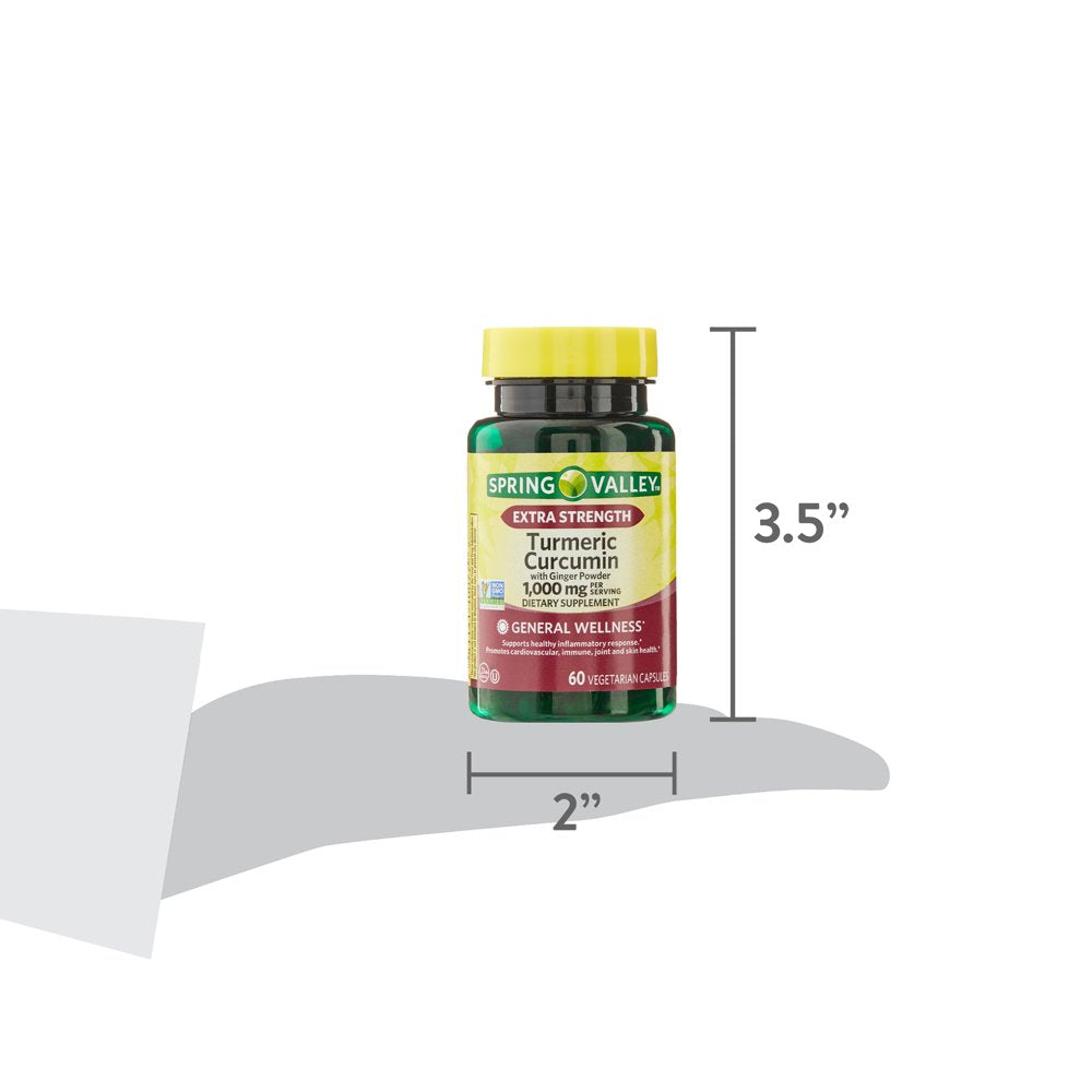 Spring Valley Turmeric Curcumin with ginger powder; Extra Strength; Vegetarian; kosher; halal;Non-GMO;1,000mg per serving; 60ct.