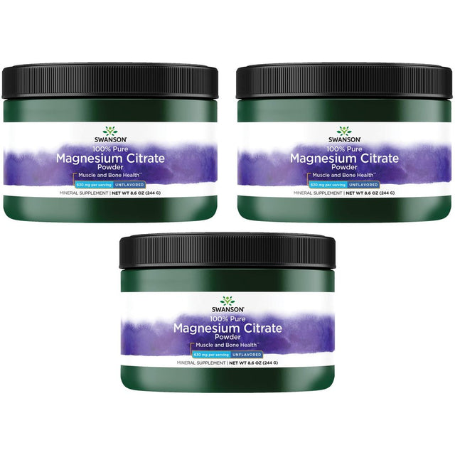 Swanson 100% Pure Magnesium Citrate Powder - Unflavored 3 Pack