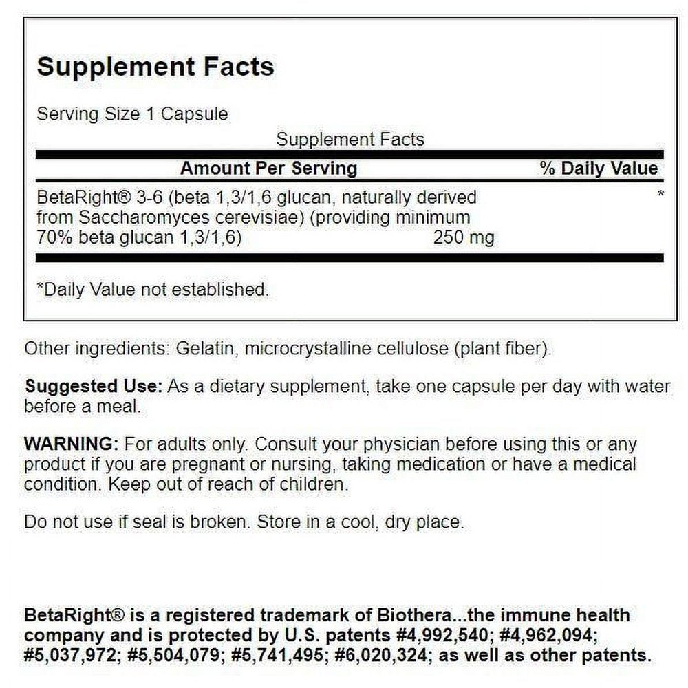 Swanson Betaright Beta Glucan 250 Mg 60 Capsules - 1 Pack is backordered and will ship as soon as it is back in stock.