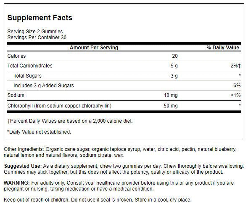 Swanson Chlorophyll Detox Gummies - Blueberry 25 Mg 60 Gummies - 1 Pack is backordered and will ship as soon as it is back in stock.