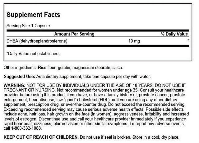 Swanson DHEA (Dehydroepiandrosterone) Capsules, 10 Mg, 120 Count - 1 Pack is backordered and will ship as soon as it is back in stock.