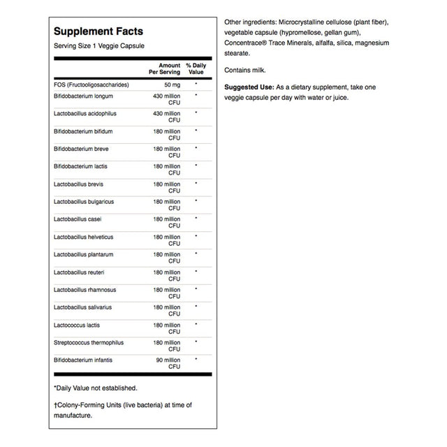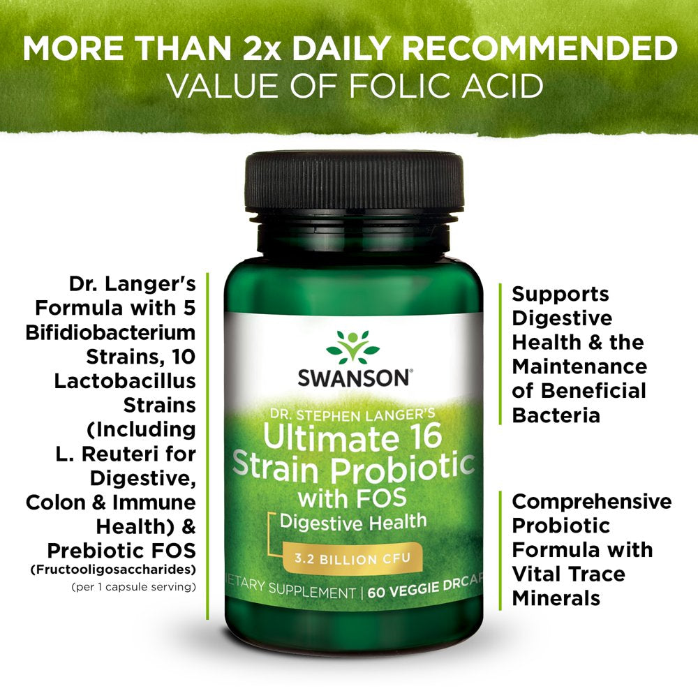 Dr. Stephen Langer's Ultimate 16 Strain Probiotic from Swanson Probiotics includes more than four times the number of strains and over twice the number of CFUs compared to many popular probiotic formulations marketed in clinics and pharmacies today. While many popular supplements provide only two strains of bifidobacteria, Dr. Langer's formula delivers four. And while others have only one strain of lactobacillus, Ultimate 16 Strain Probiotic features eleven, including Lactobacillus reuteri , which was recently added to improve the formula because of the unique protective abilities it offers for colon health and immune system function. And that's not all. The formula also includes the prebiotic FOS and ConcenTrace(R) trace minerals, which you won't find in any off-the-shelf product. Prebiotics and trace minerals are important because most of us are lacking them in our diets, but they're absolutely vital to the enzymatic processes necessary for healthy digestion and the maintenance of