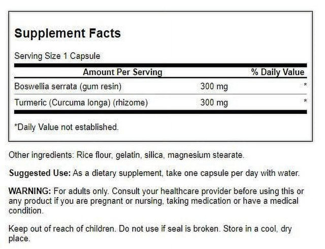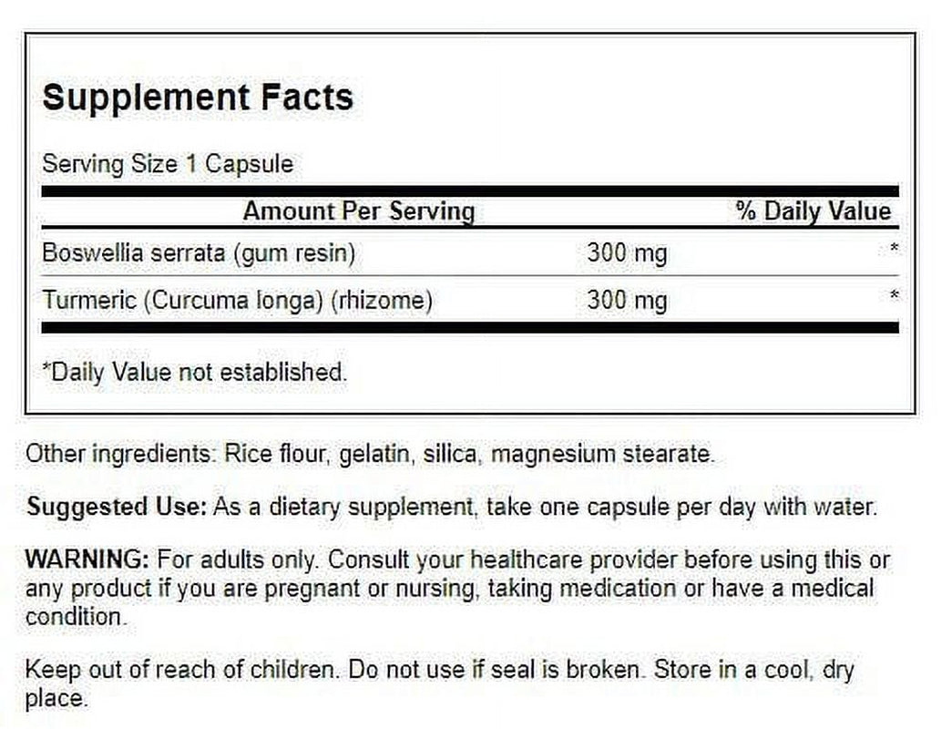 - Each serving delivers 300 mg each of boswellia and curcumin